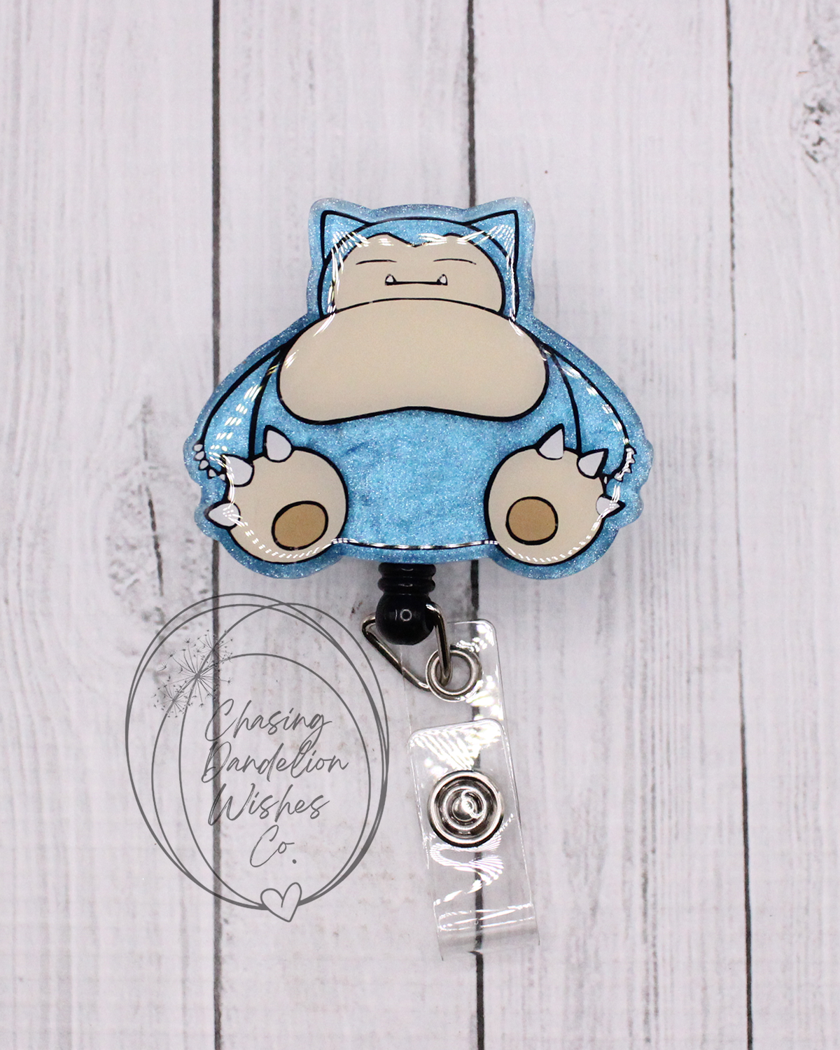 Glitter/Mica resin on clear acrylic badge reel attached to alligator clip badge...